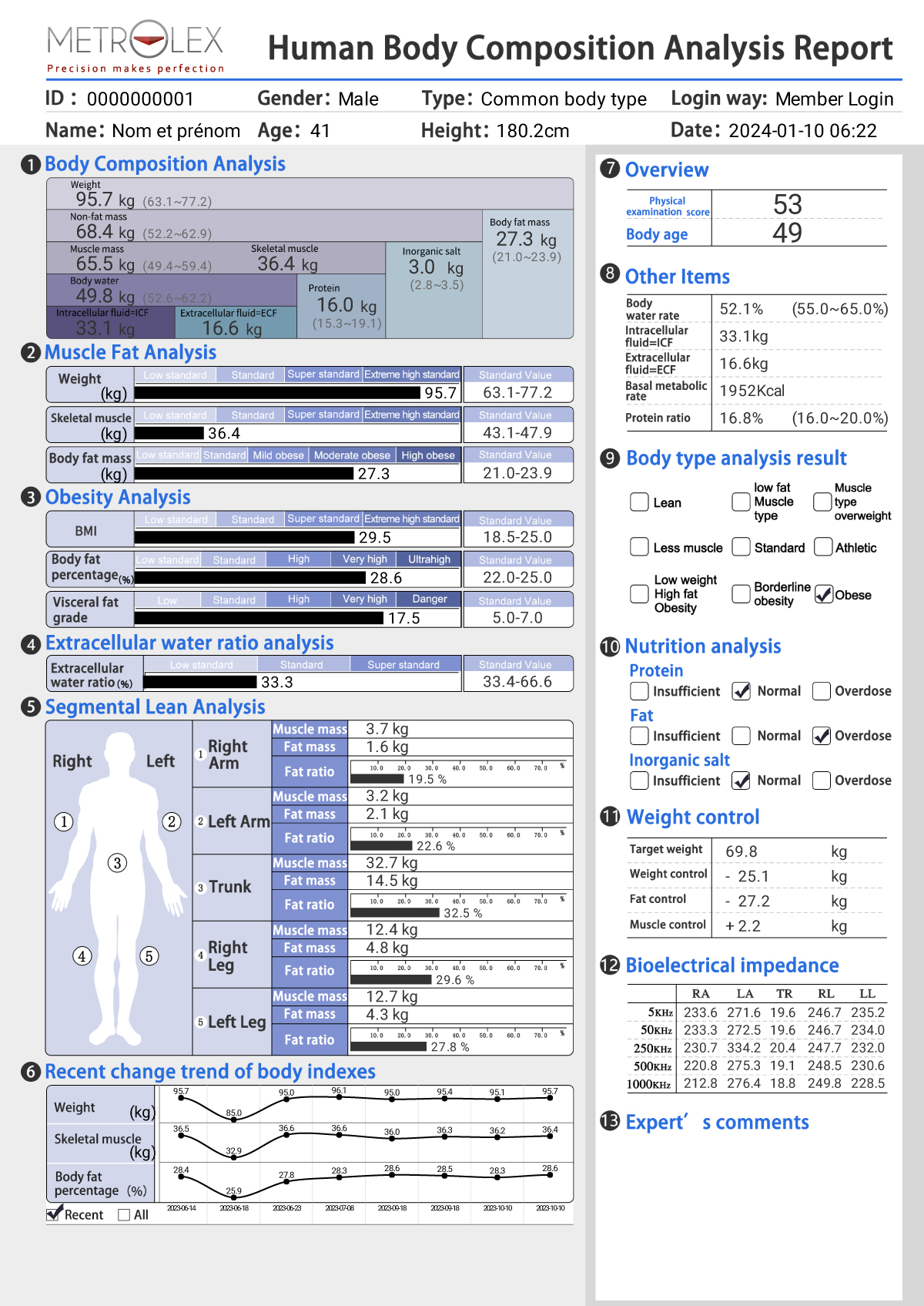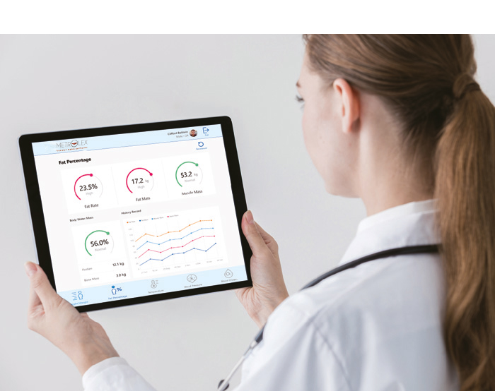 The MX-F500 scale is a state-of-the-art device providing over 50 body metrics for in-depth analysis.